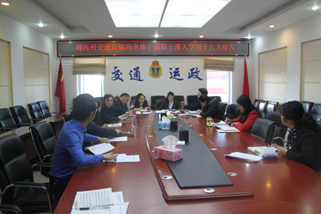 2017年11月8日,海西州交通运输局党支部、运管处党支部集中召开专题学习会,传达学习党的十九大精神。会议传达学习了《州直机关工委关于在州直机关党组织和广大党员干部中深入学习贯彻党的十九大精神的通知》、《党的十九大精神传达提纲》和《中共海西州委十二届五次全体会议精神传达提纲》。
